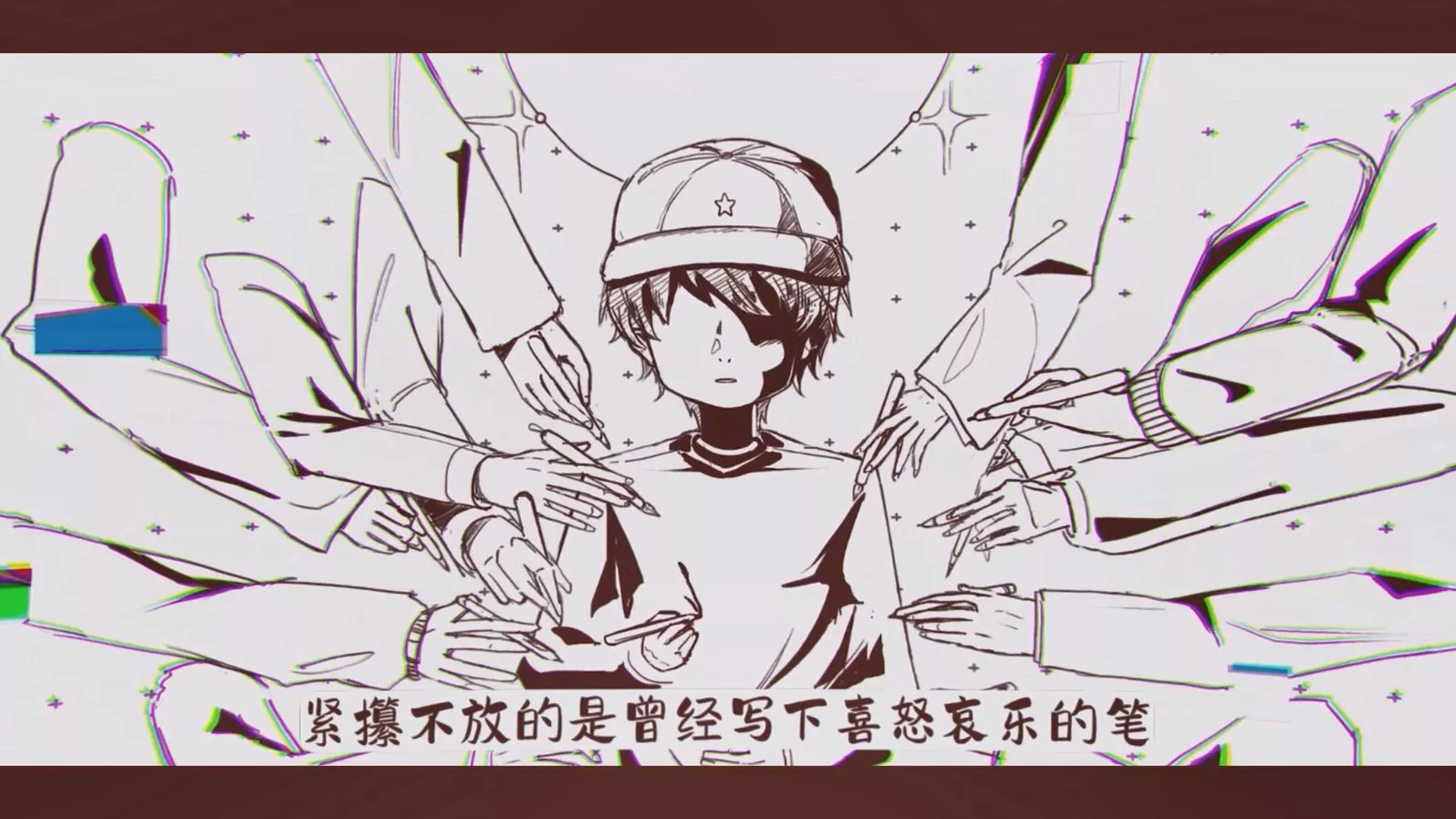 紧攥不放的是曾经写下喜怒哀乐的笔